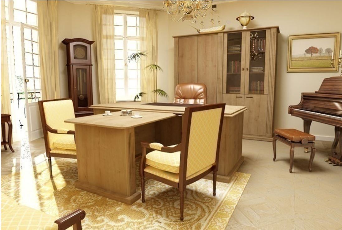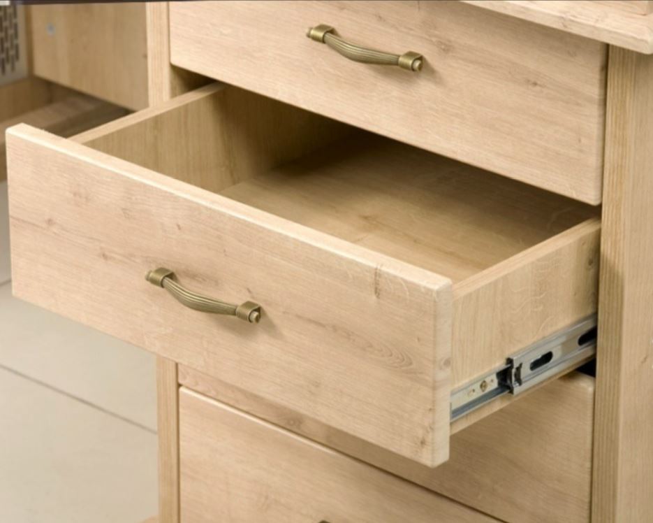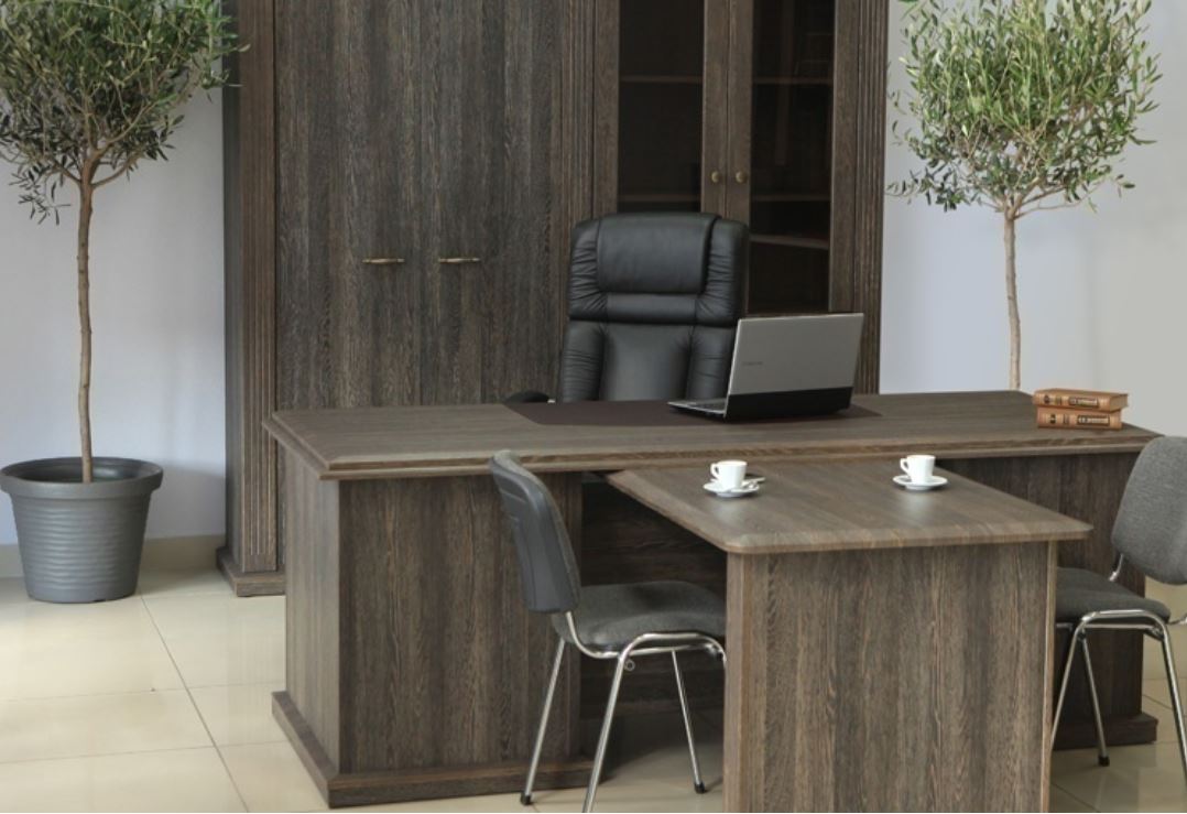 • Опоры стола - 2 тумбы, каркас тумбы: боковые стенки ДСП 28 мм, полки ДСП 18 мм. Ящики с системой полного выдвижения, фасады ящиков и двери распашные в тумбах из МДФ 19 мм, полки тумб – МДФ 25 мм, цоколь и царга – ДСП 18 мм.